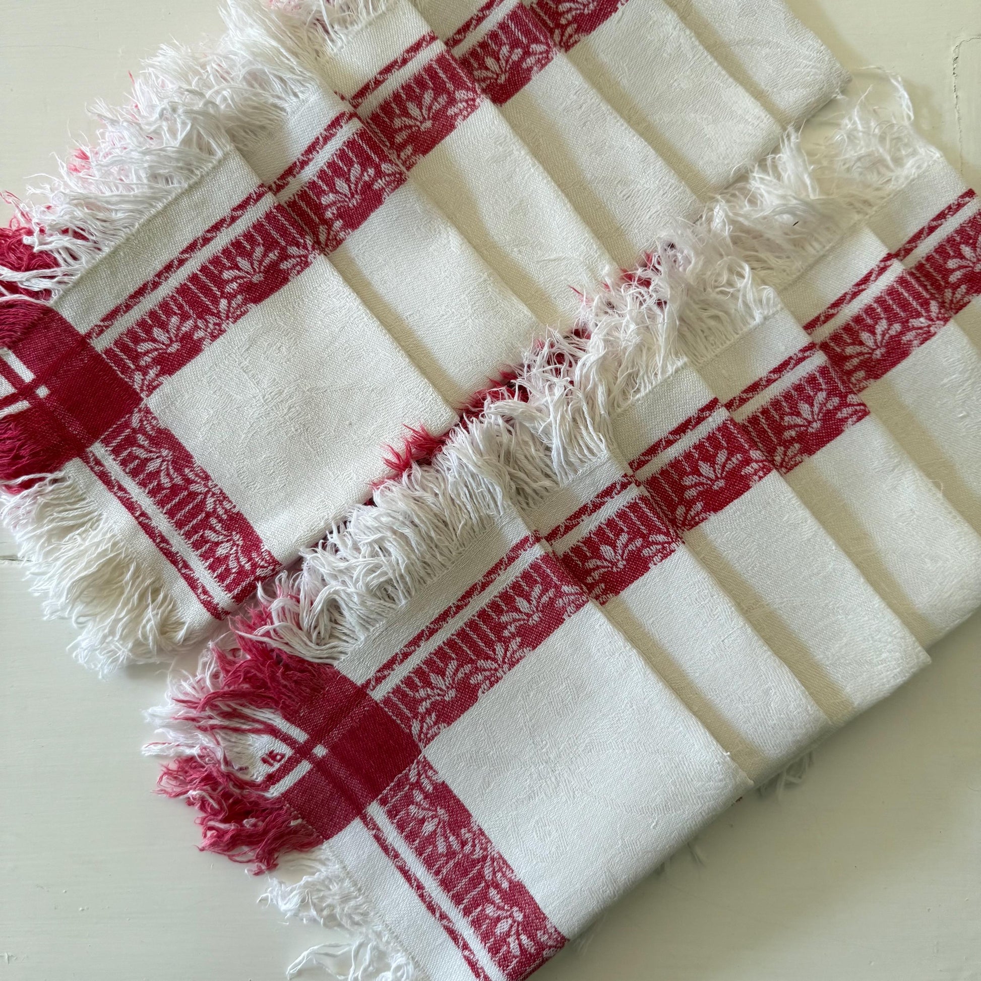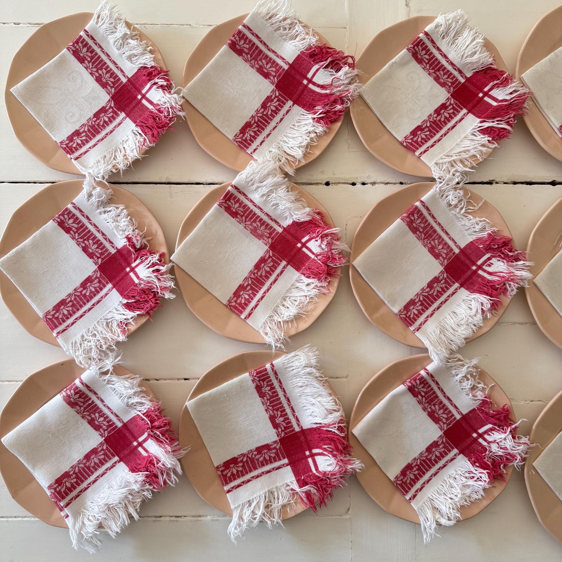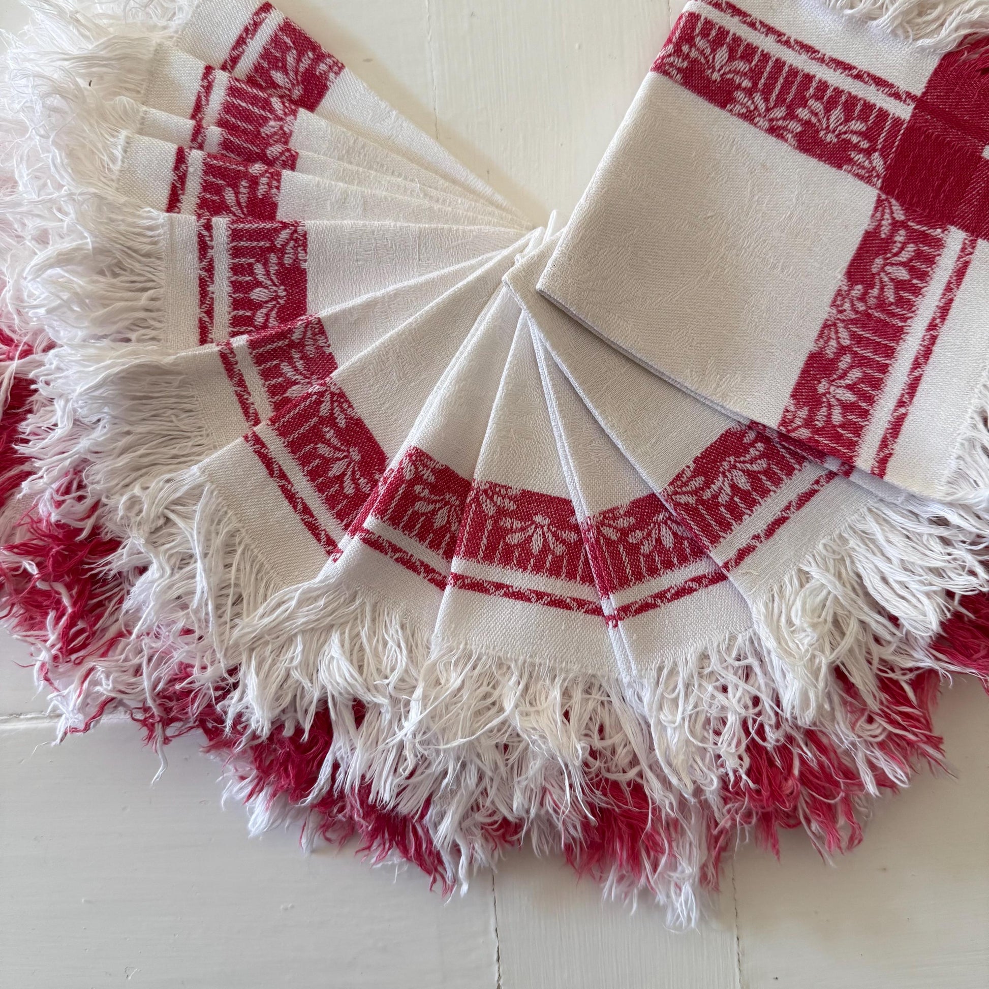 Set of 12 French antique linen tea napkins.