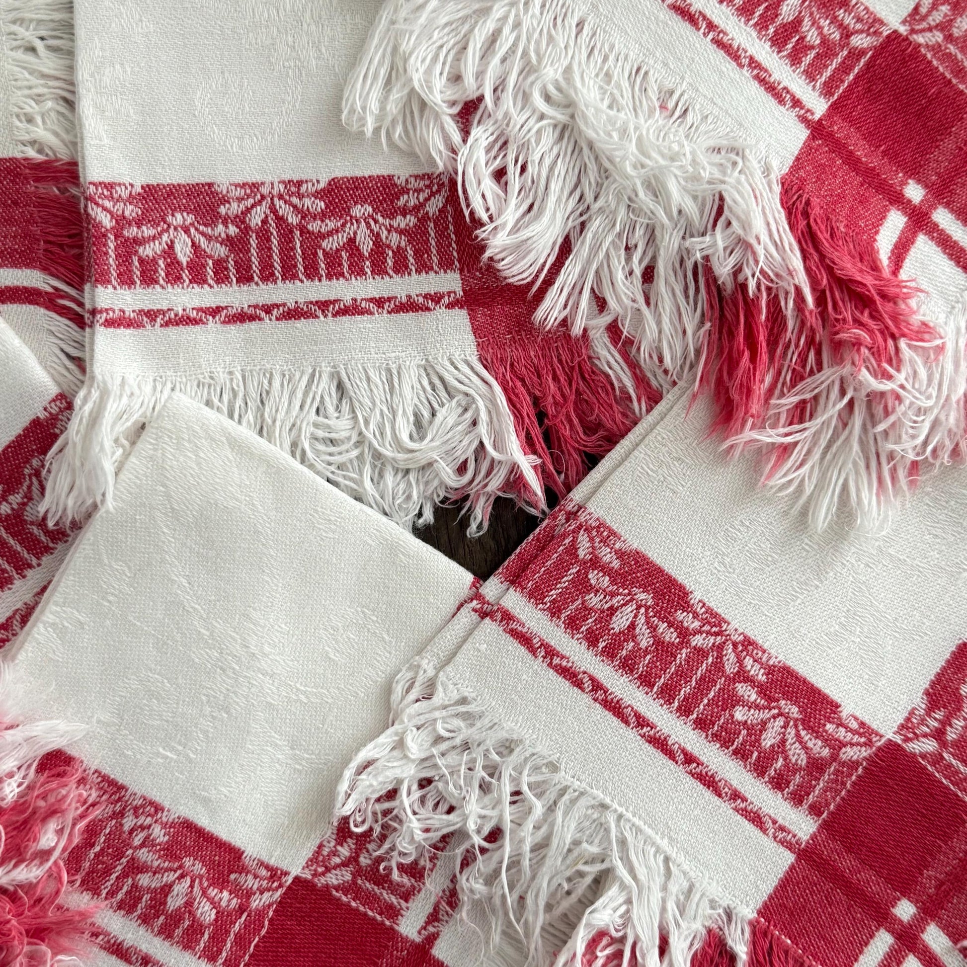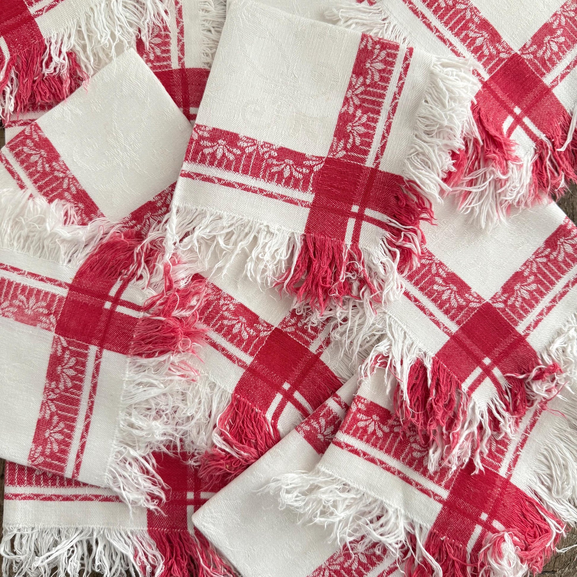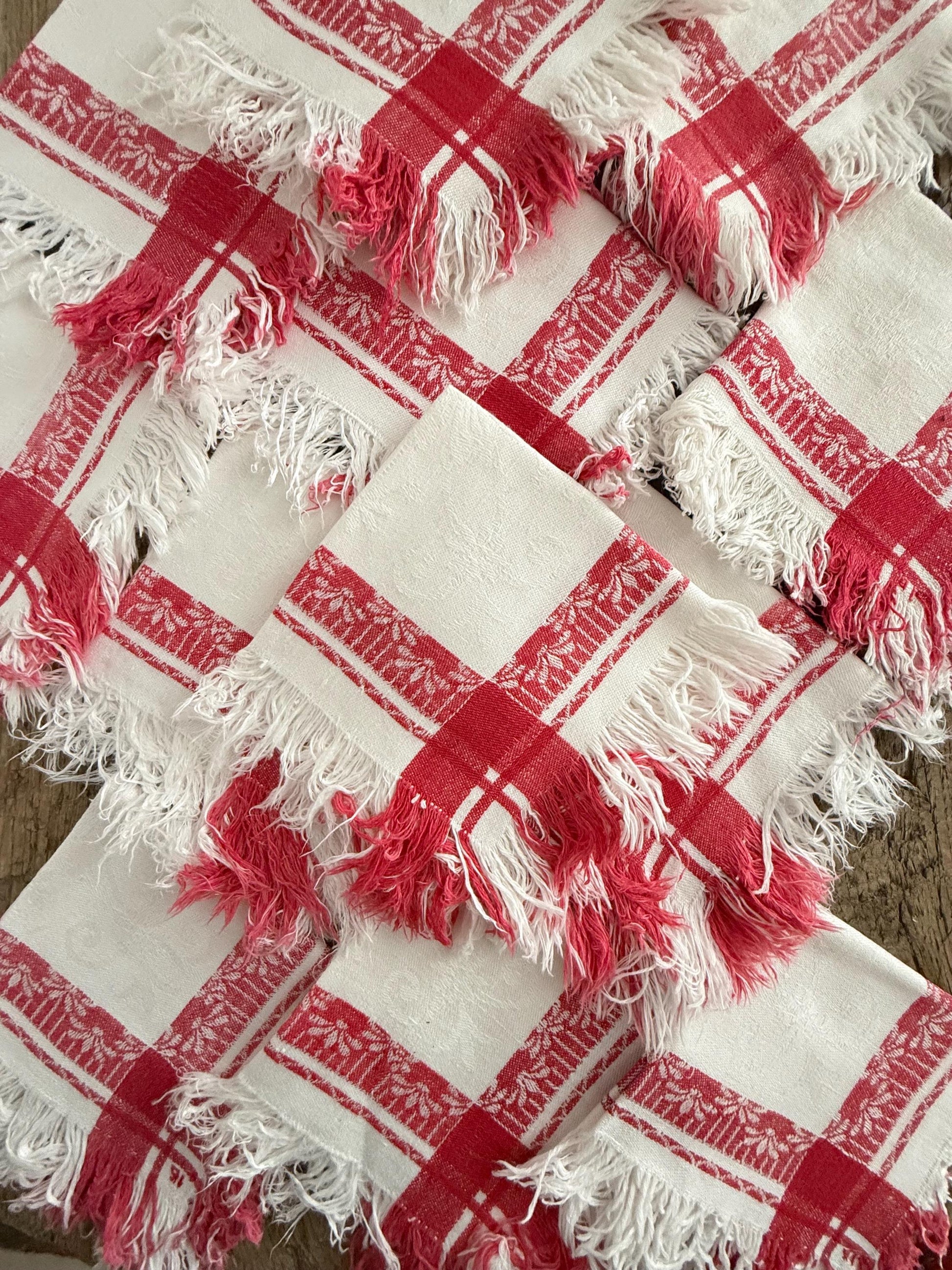 Set of 12 French antique linen tea napkins.