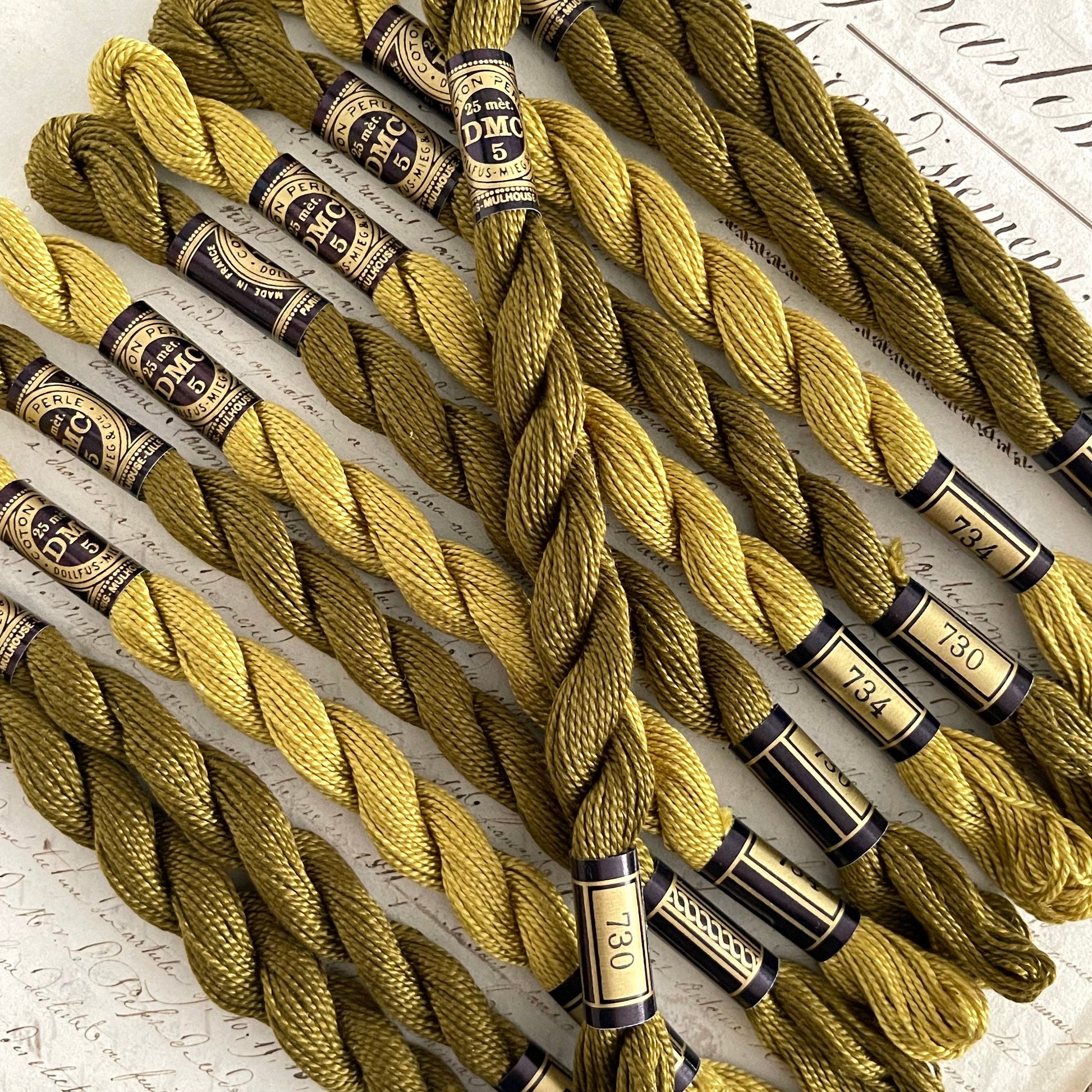 A boxed set of 12 French vintage DMC Perlé coton No5 skeins.. a great green combo!