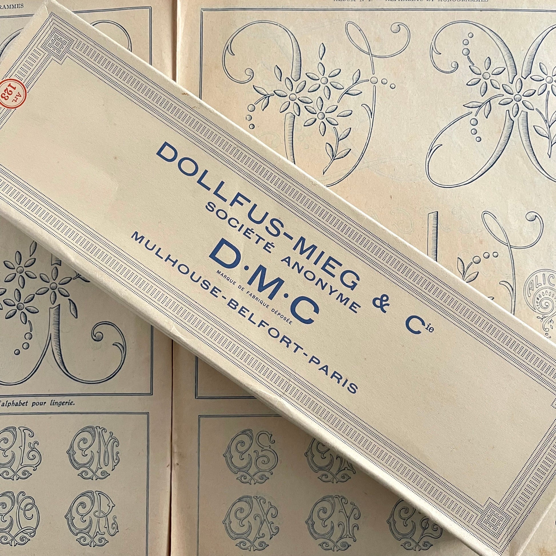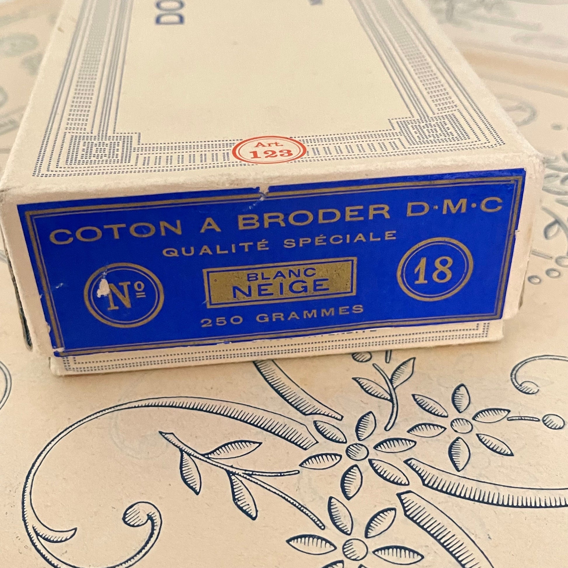 Beautiful long box of French antique DMC Embroidery Thread, Qualité Spéciale' No 18. 35 skeins of 70m 76 yards in their original box