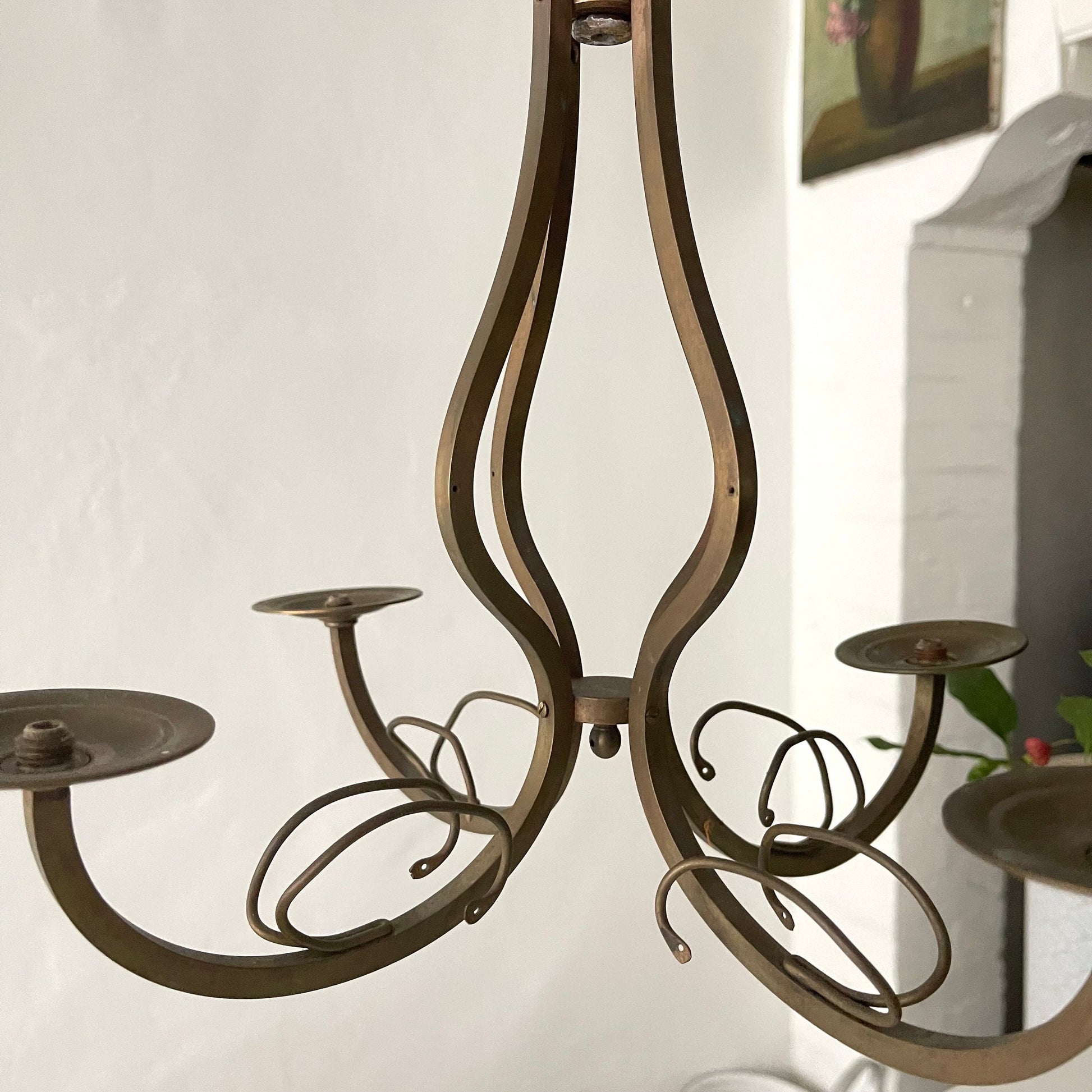 French Vintage 'Bare Bones' Brass Lustre, Chandelier... 4 Branch