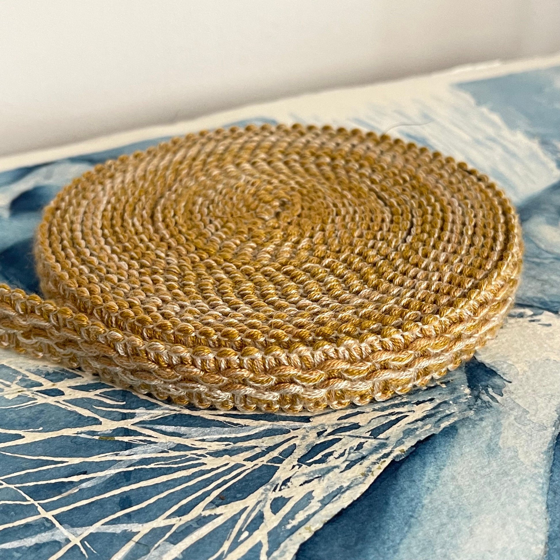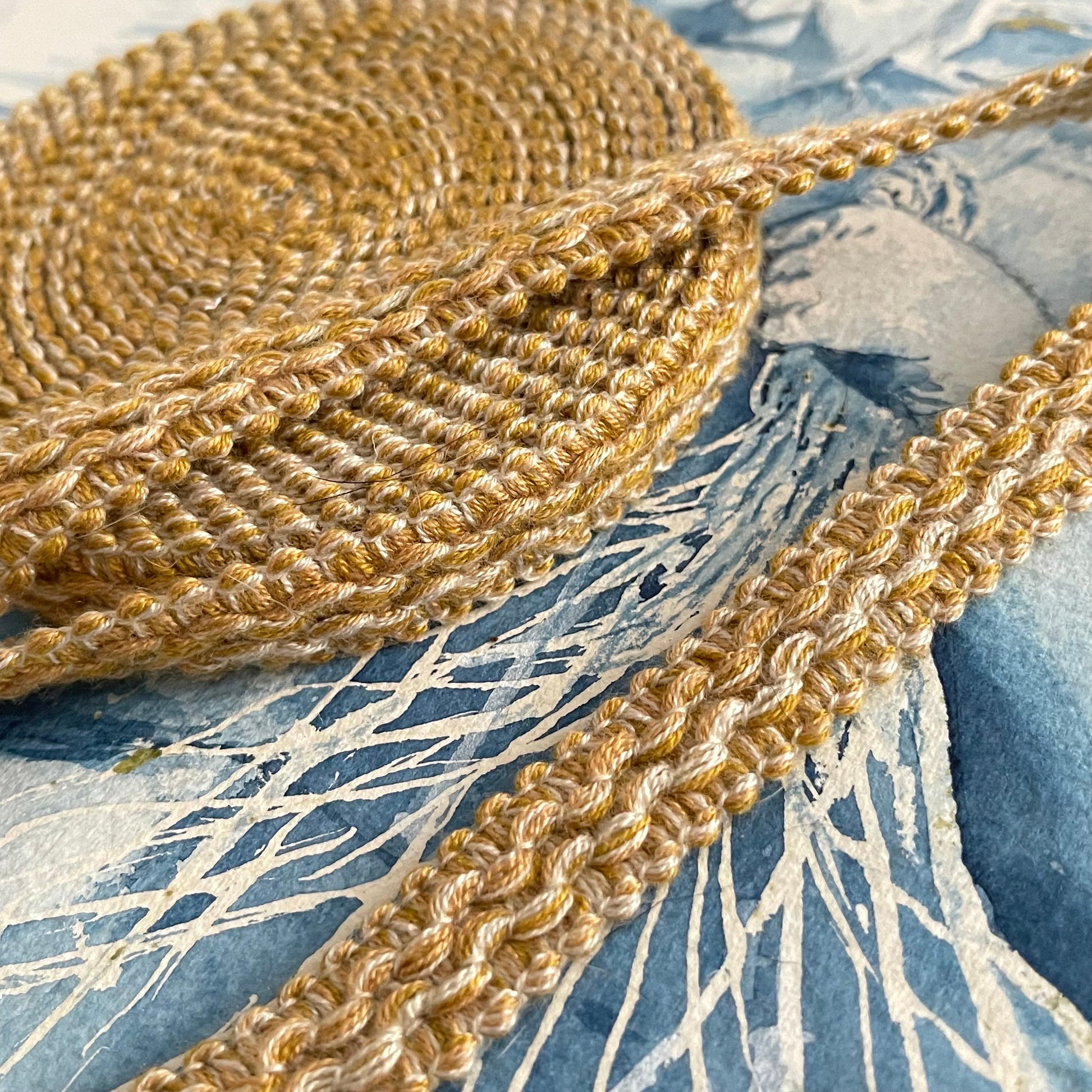 Pretty new old stock braid in gold. Perfect vintage condition, a haberdashers delight! Ideal for lampshades, upholstery, cushions....See separate listing for blue - as seen in the last photo - now SOLD.