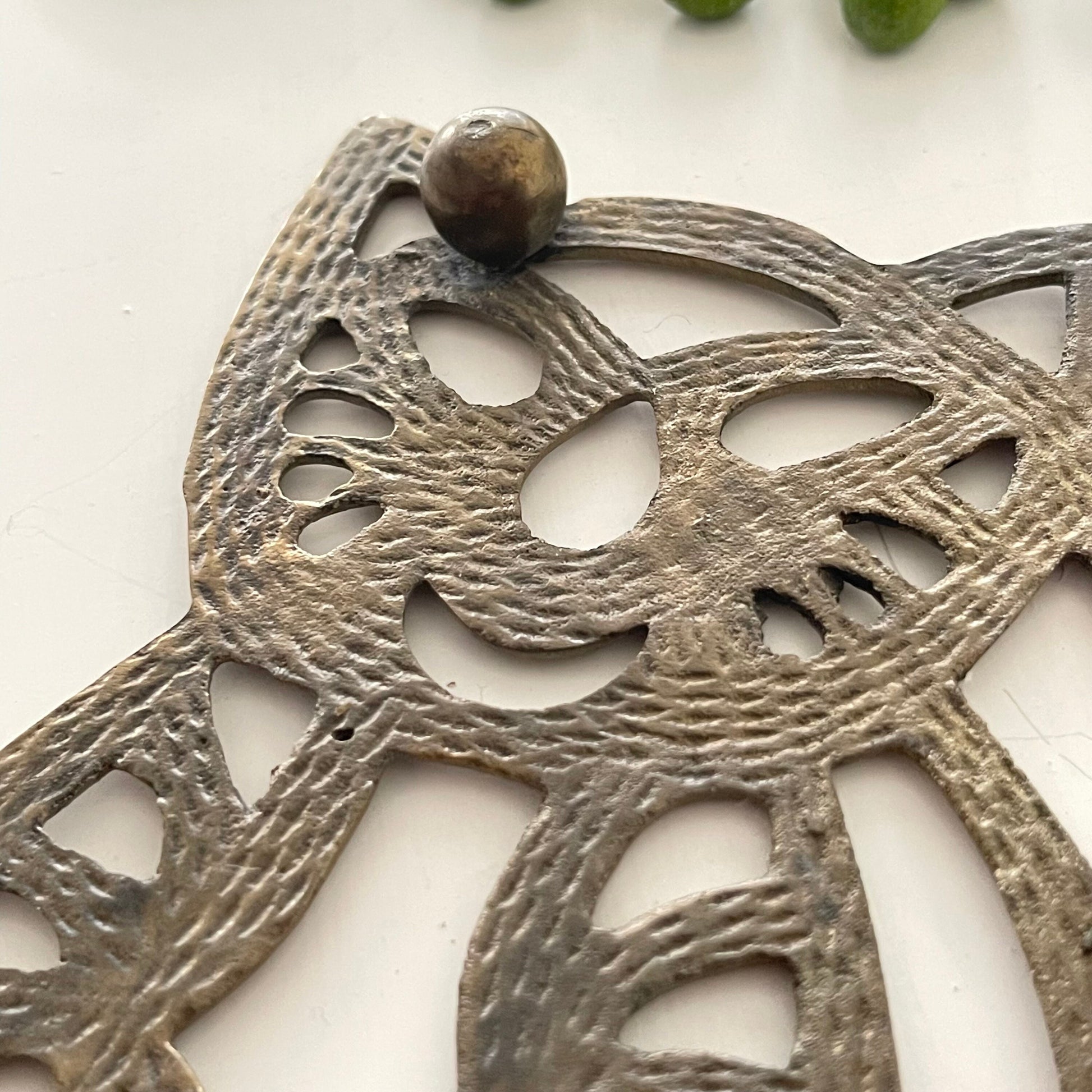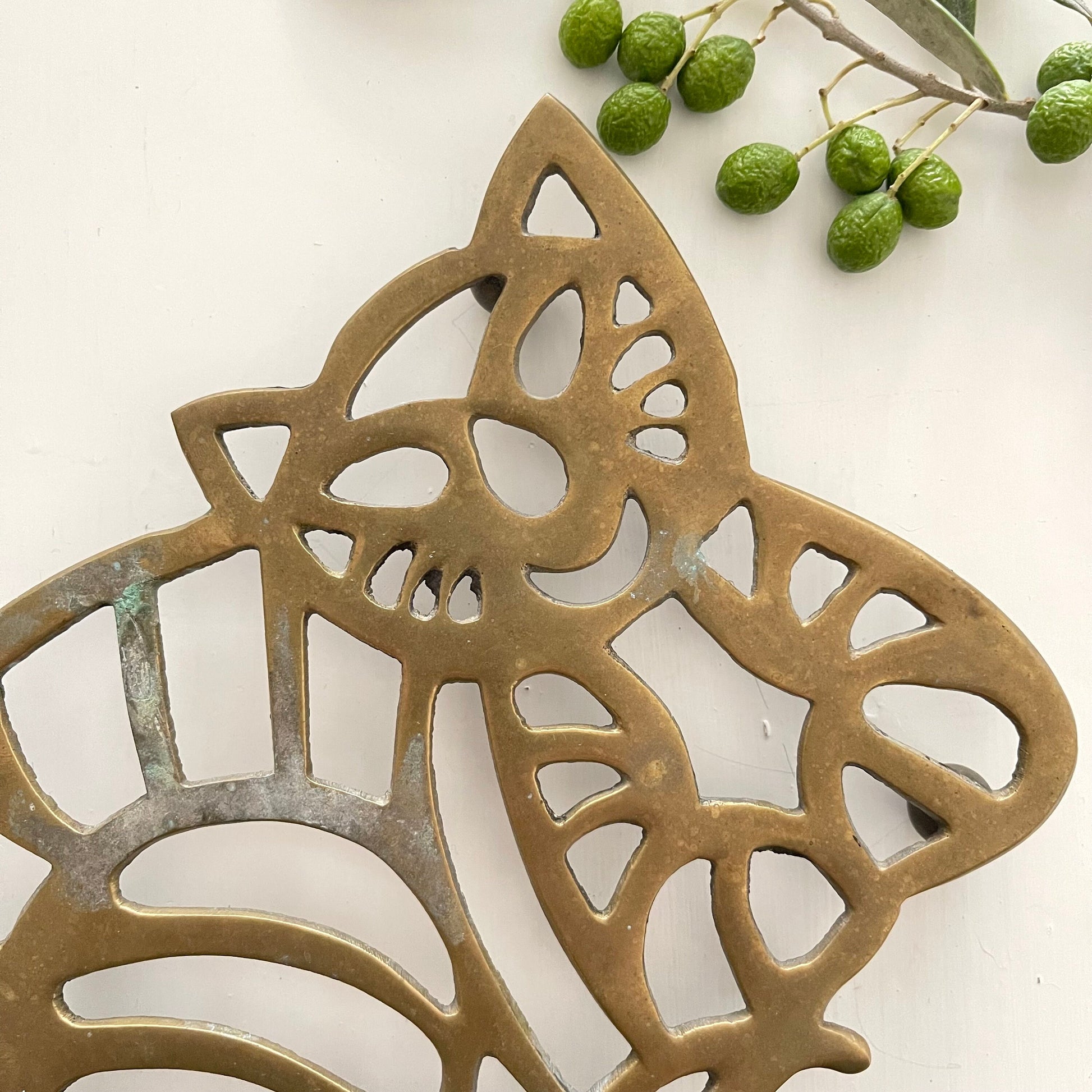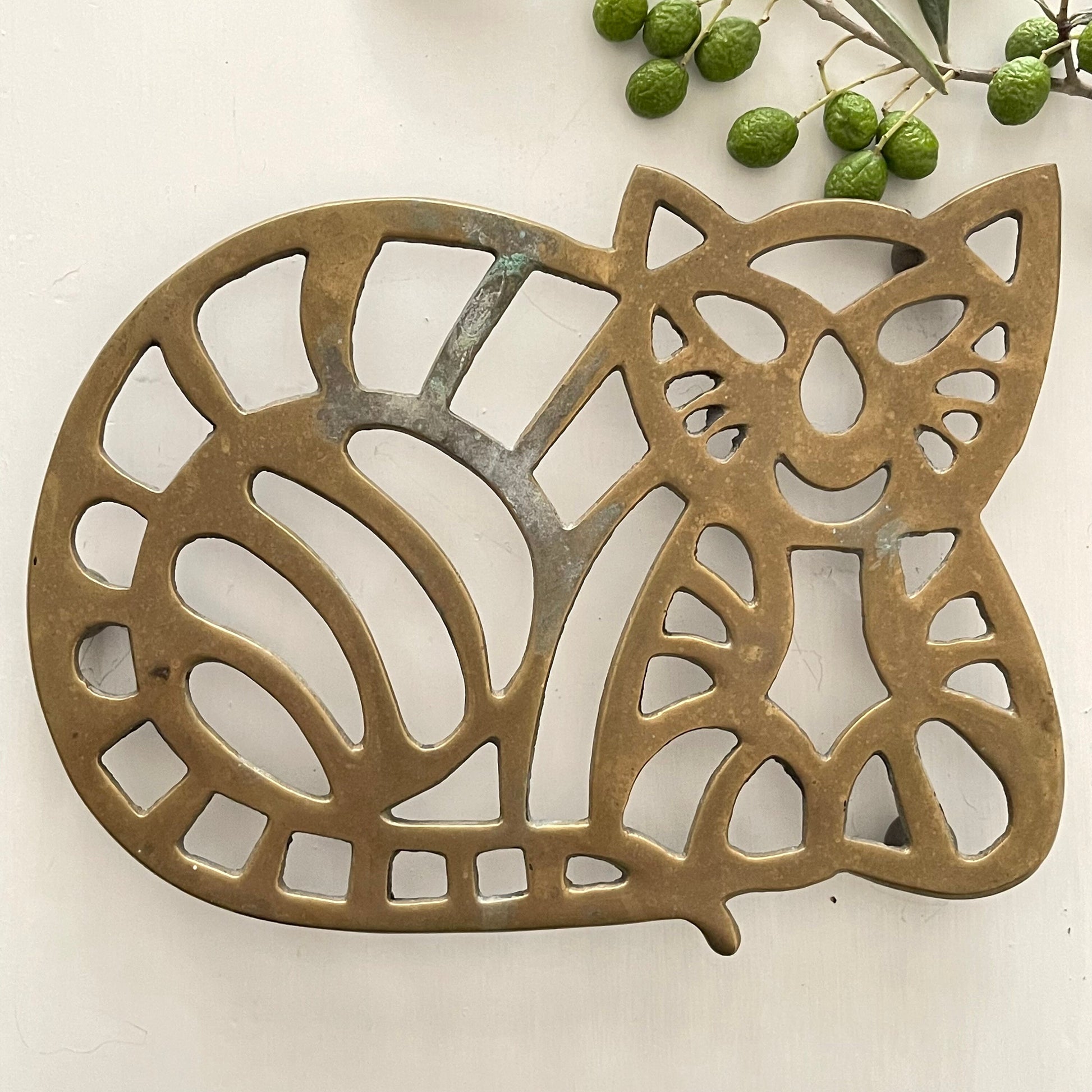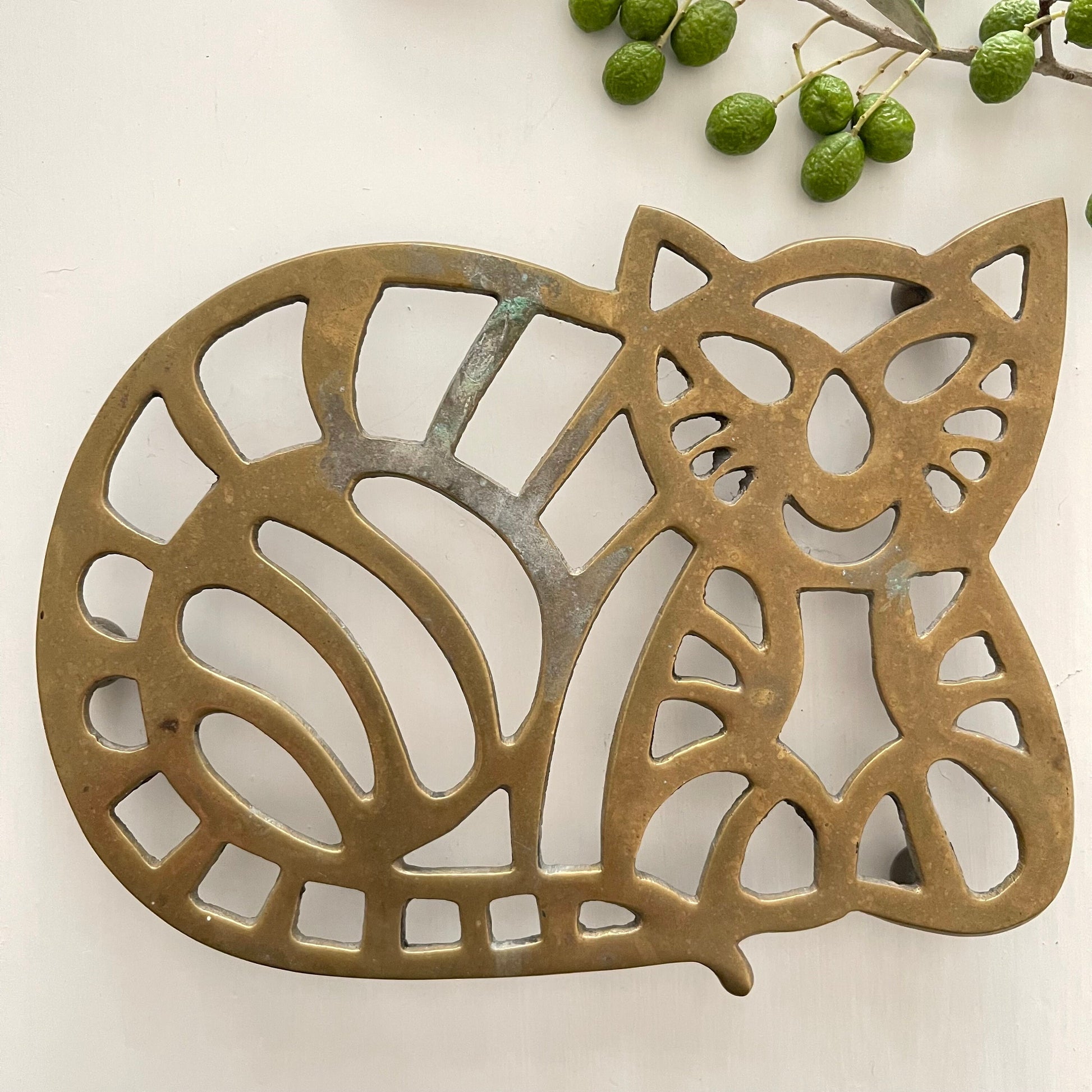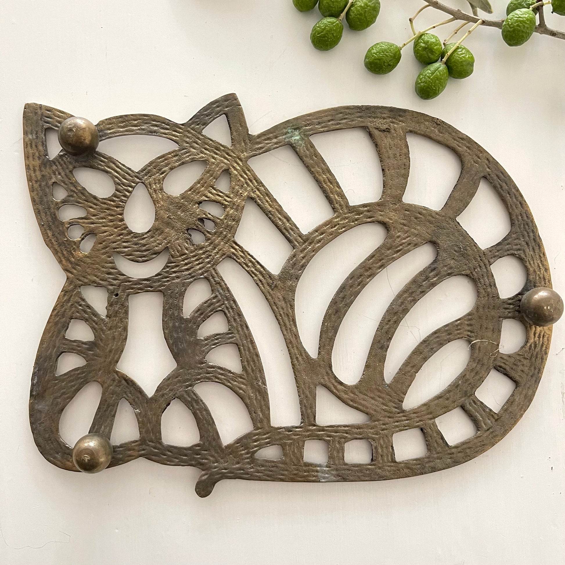 A very special, super cute kitty brass French vintage pot stand / trivet. With 3 sturdy little ball feet and oodles of patina, such character…. very special!