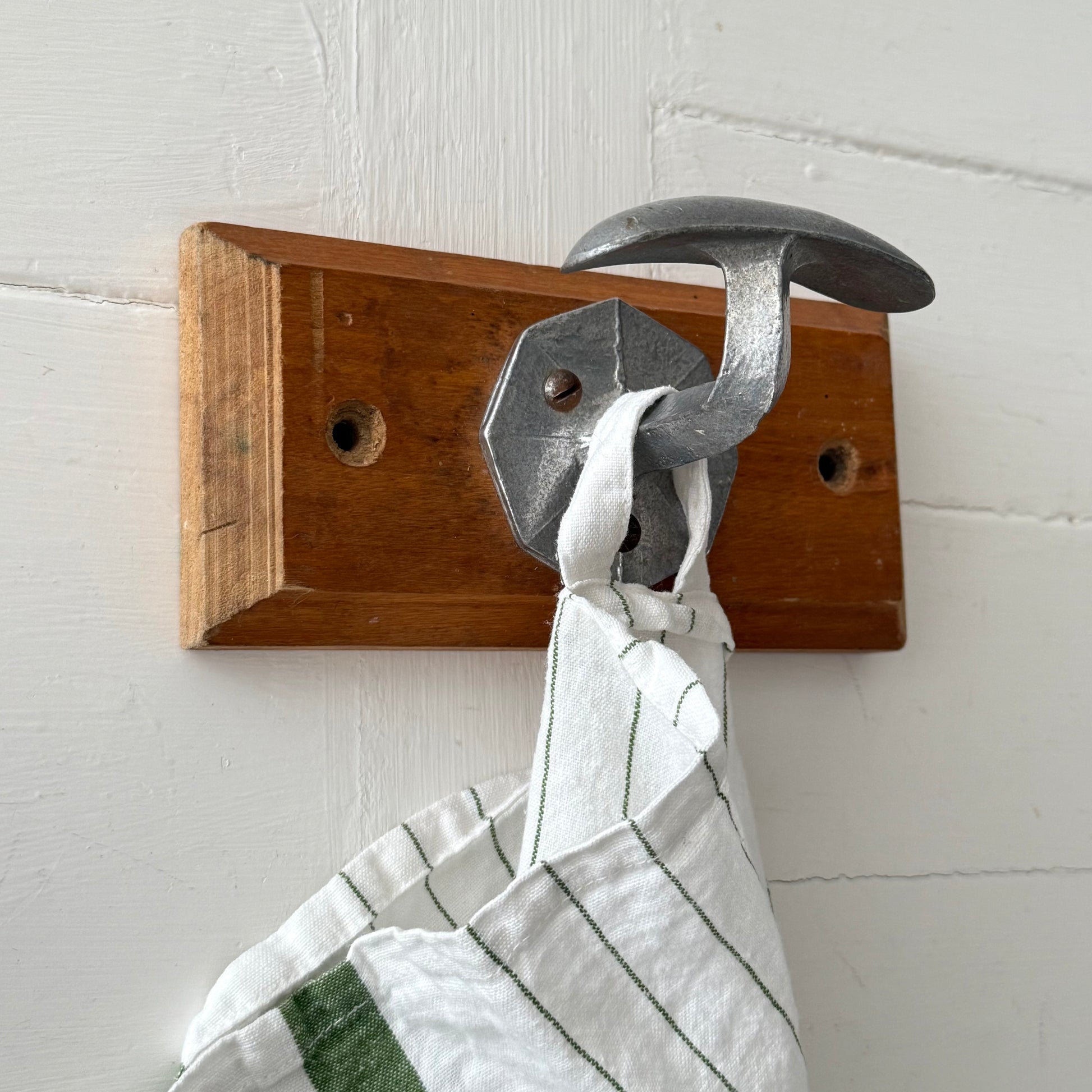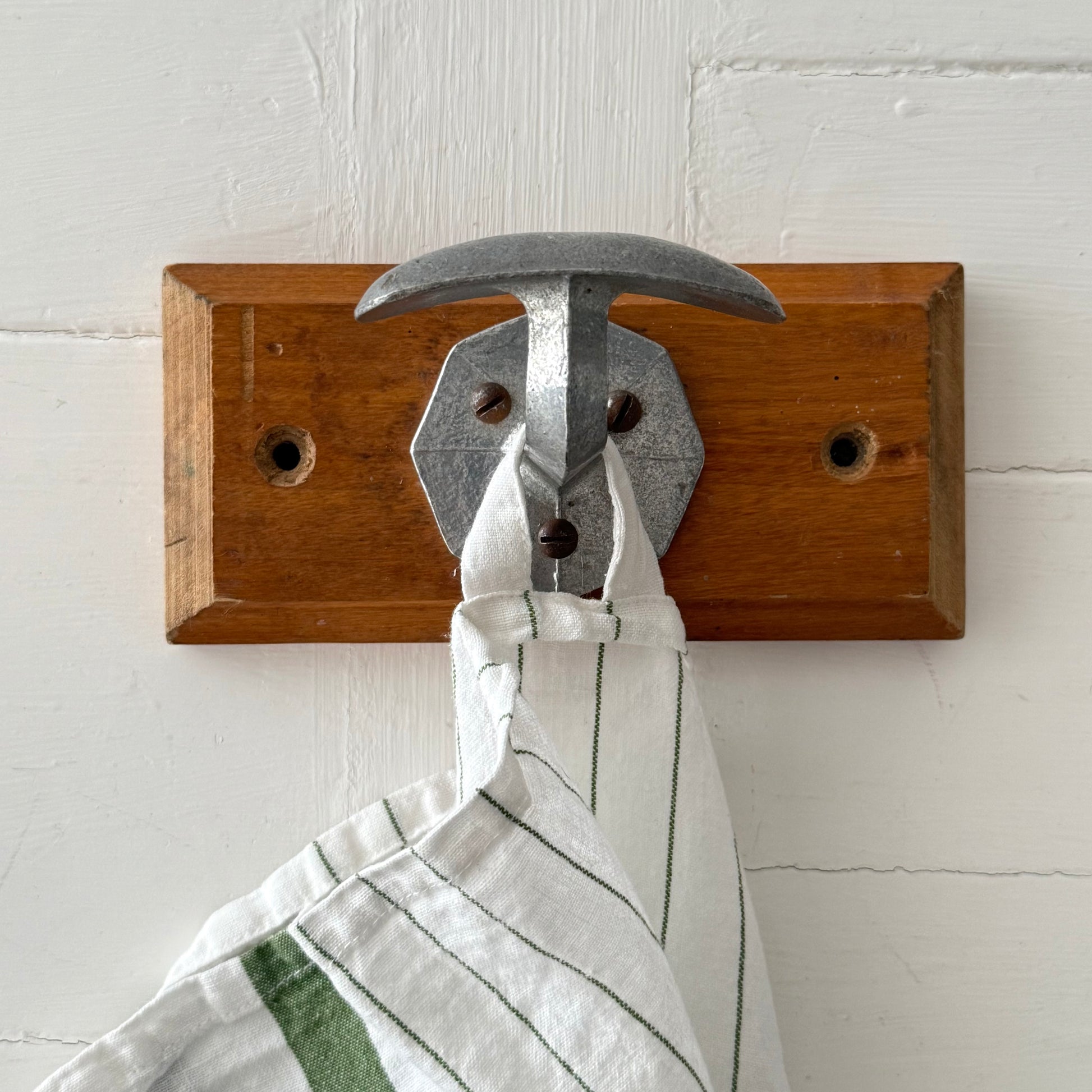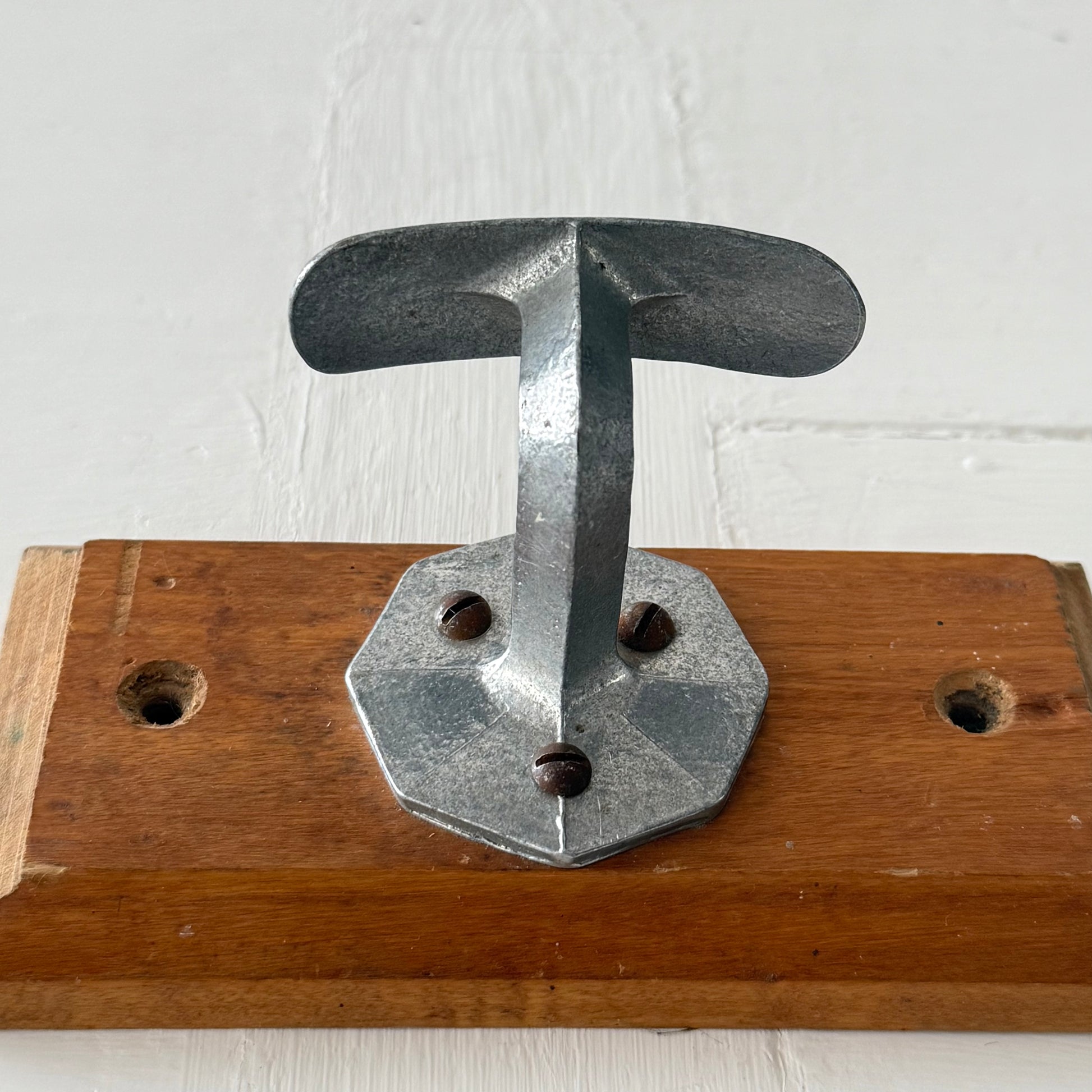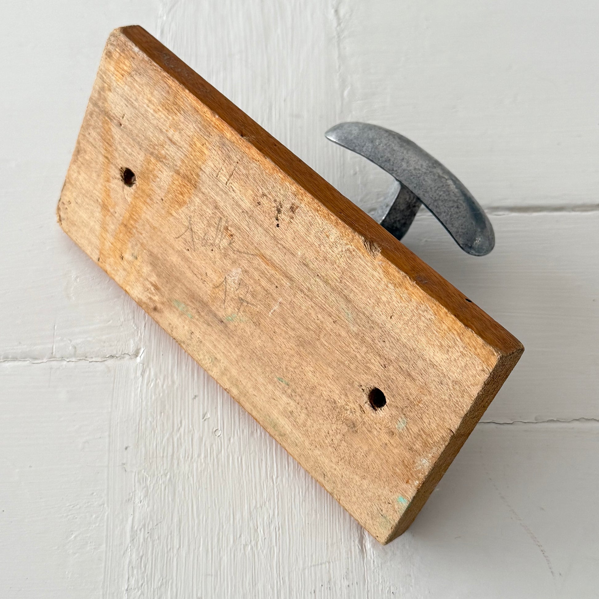 50's French vintage hook on a wooden backing plate with 2 holes to fix.