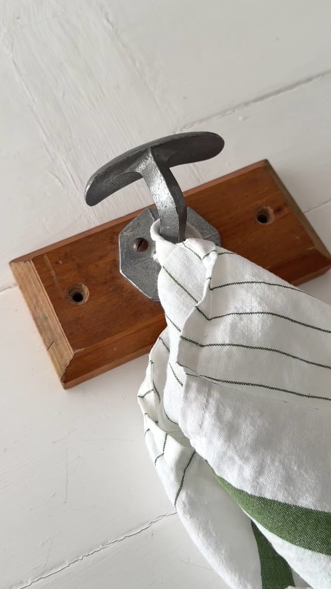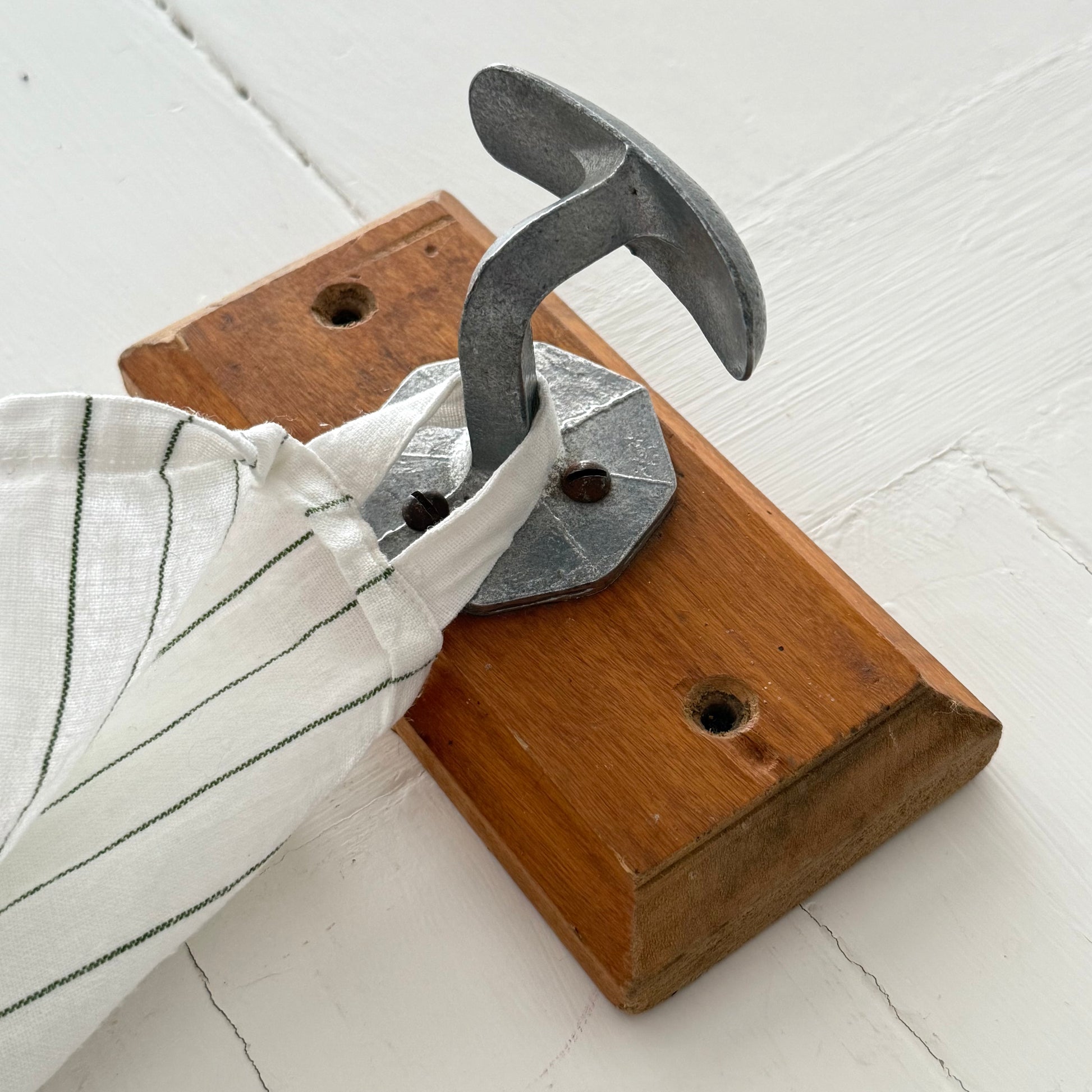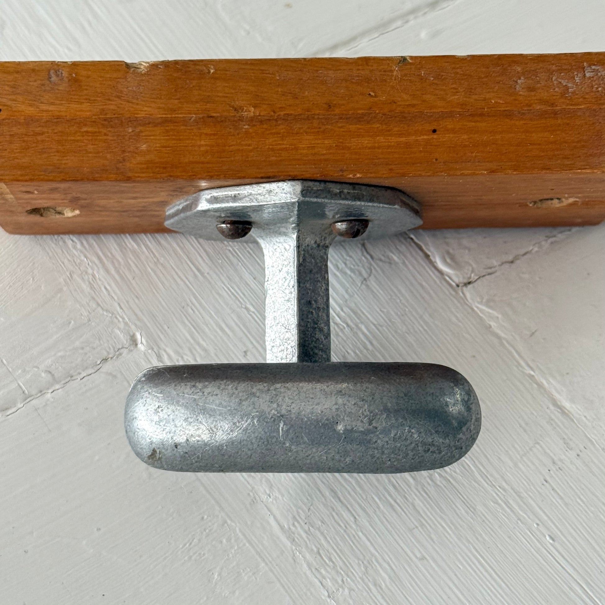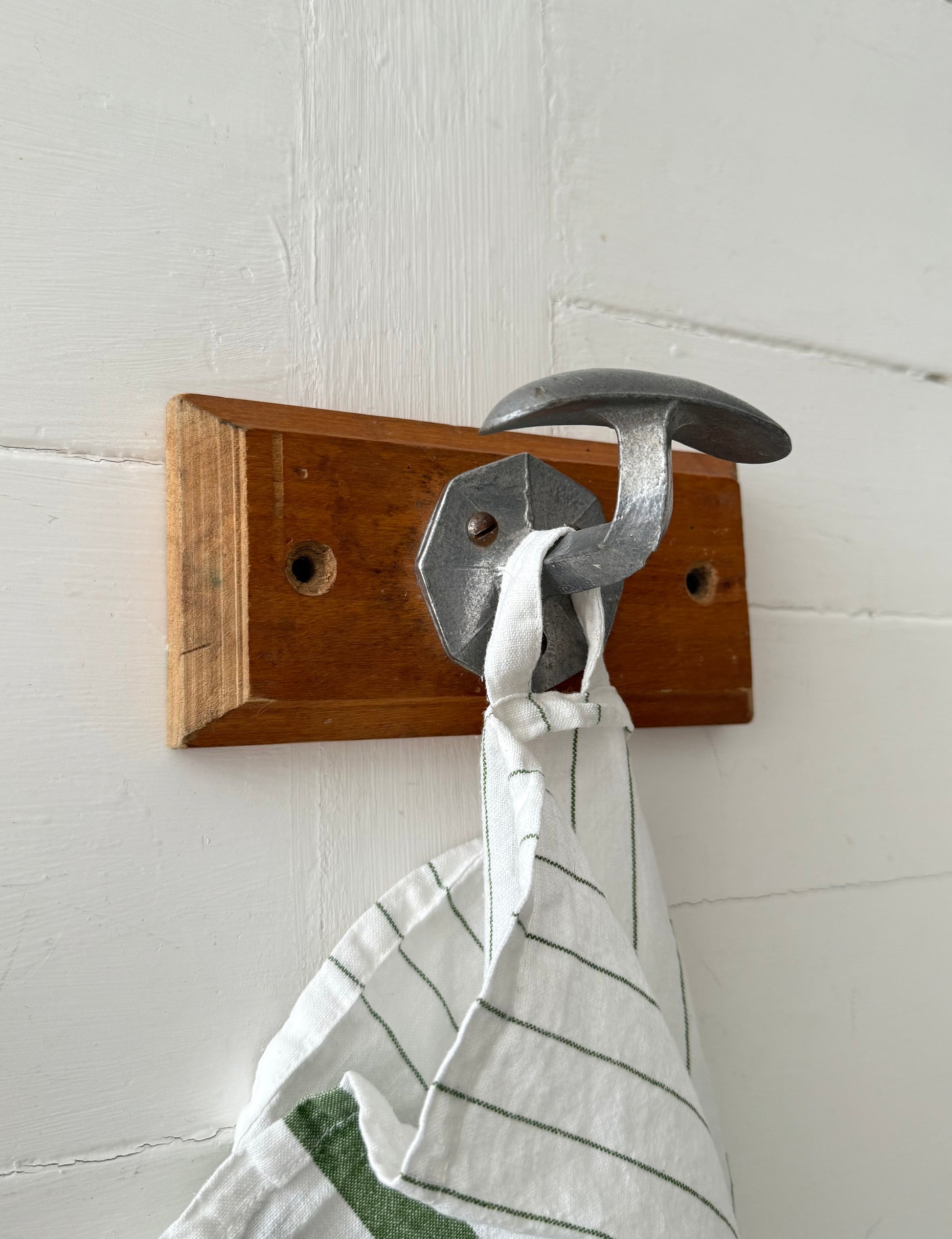 50's French vintage hook on a wooden backing plate with 2 holes to fix.