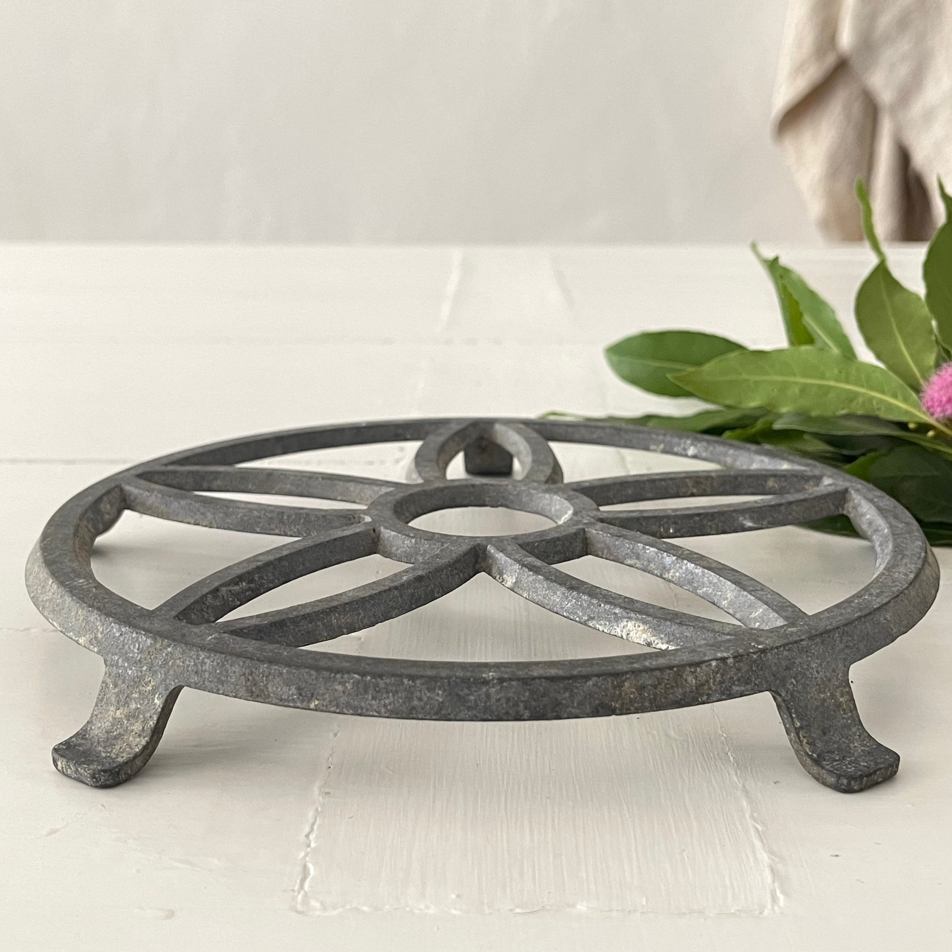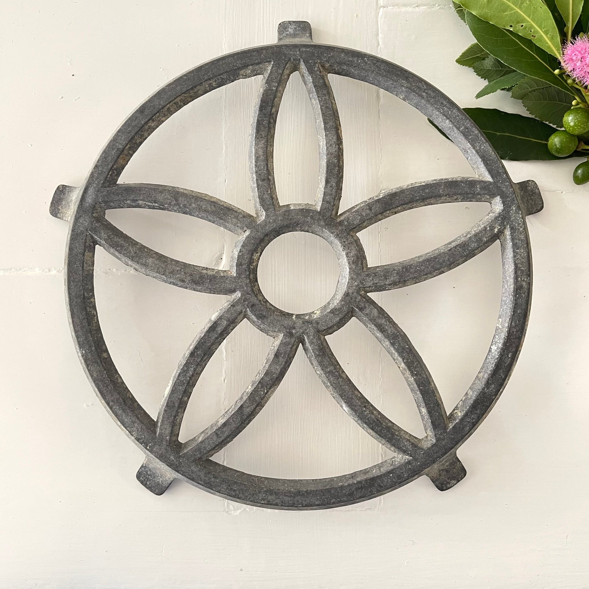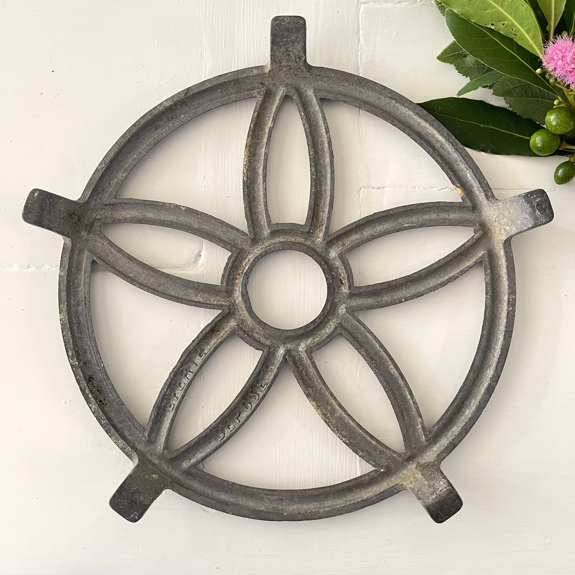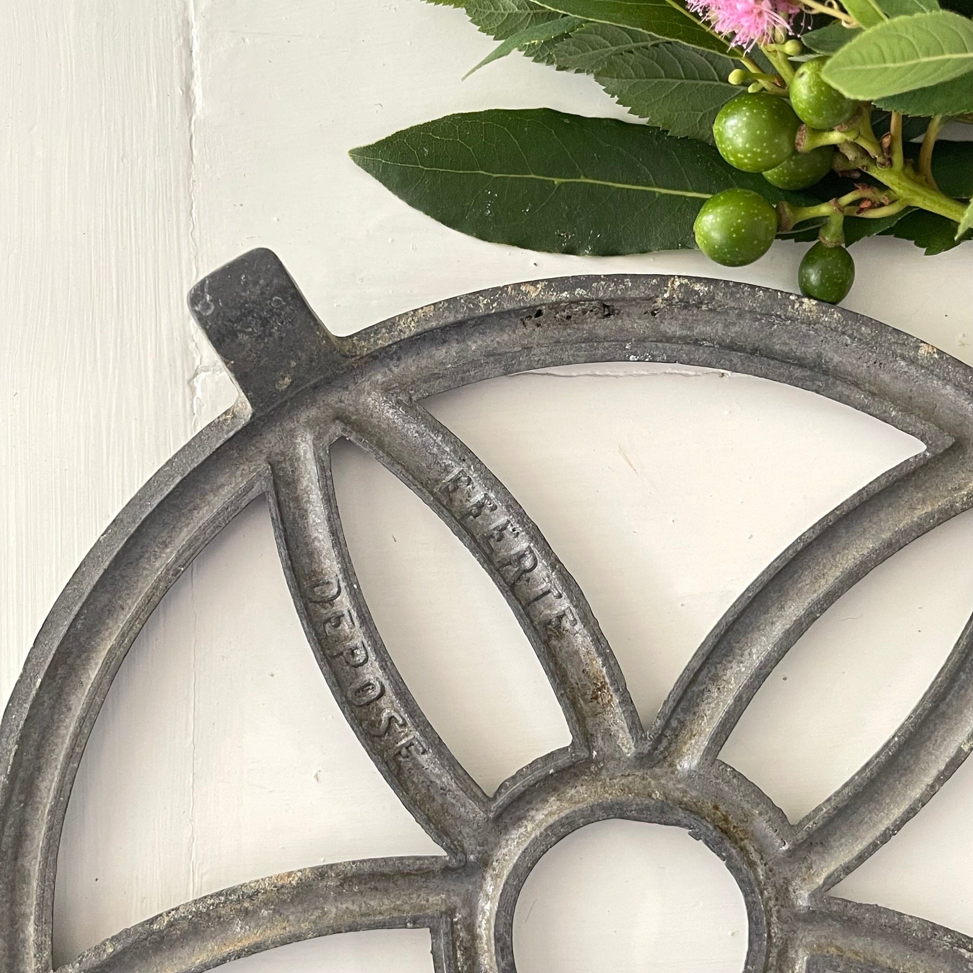 French vintage pot Stand / trivet in the shape of a flower, with five sturdy little feet. Oodles of patina and character.. striking flower form, very special!