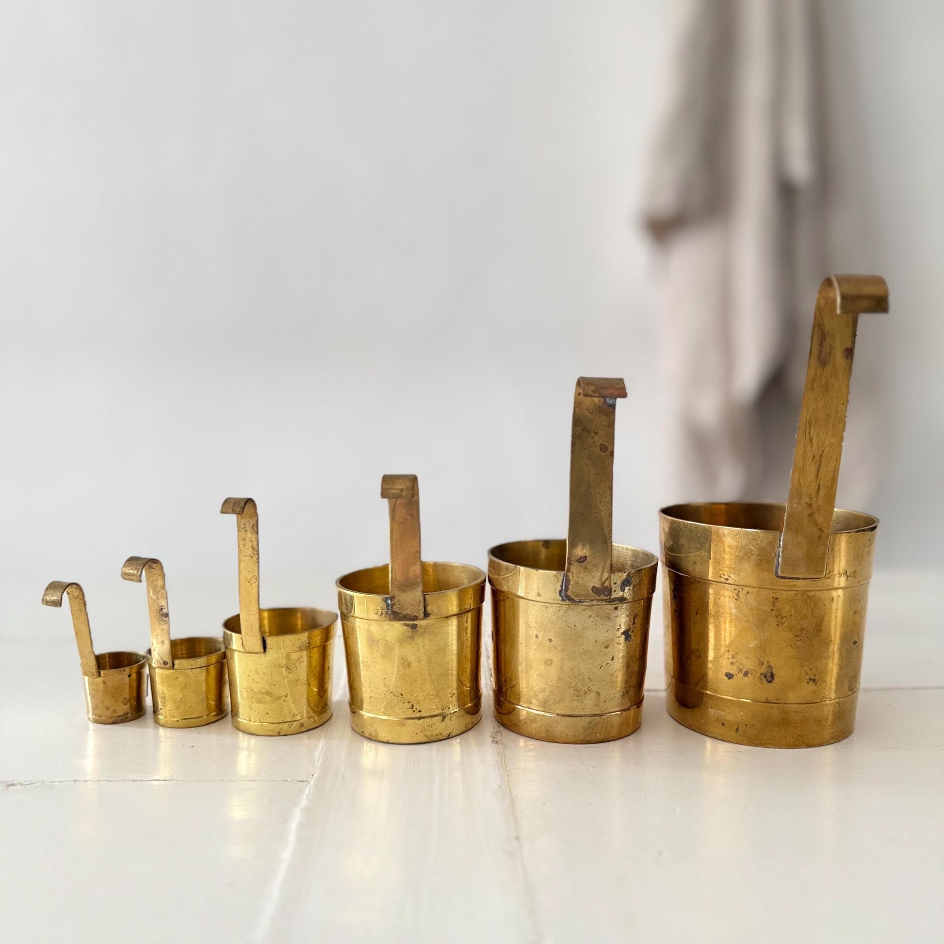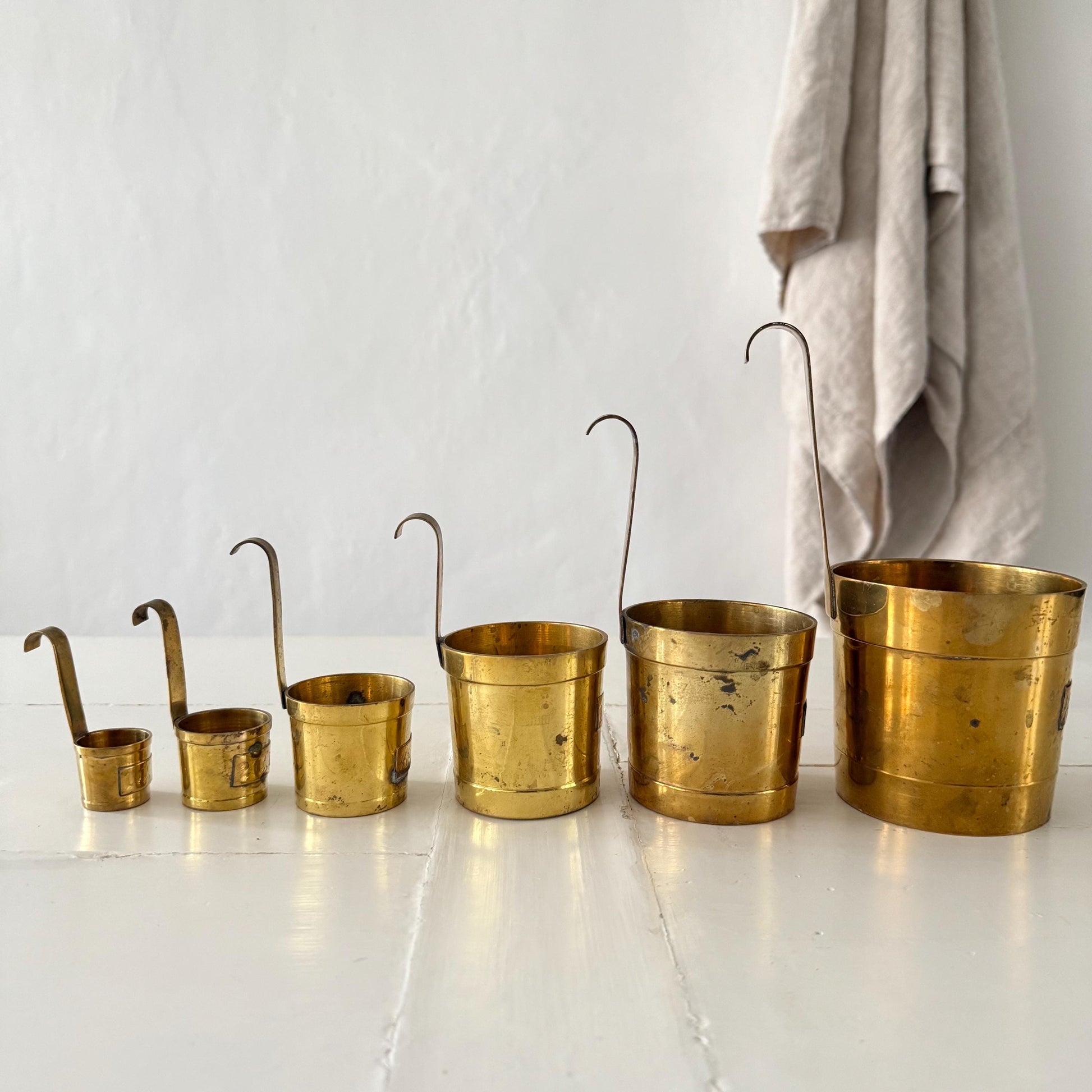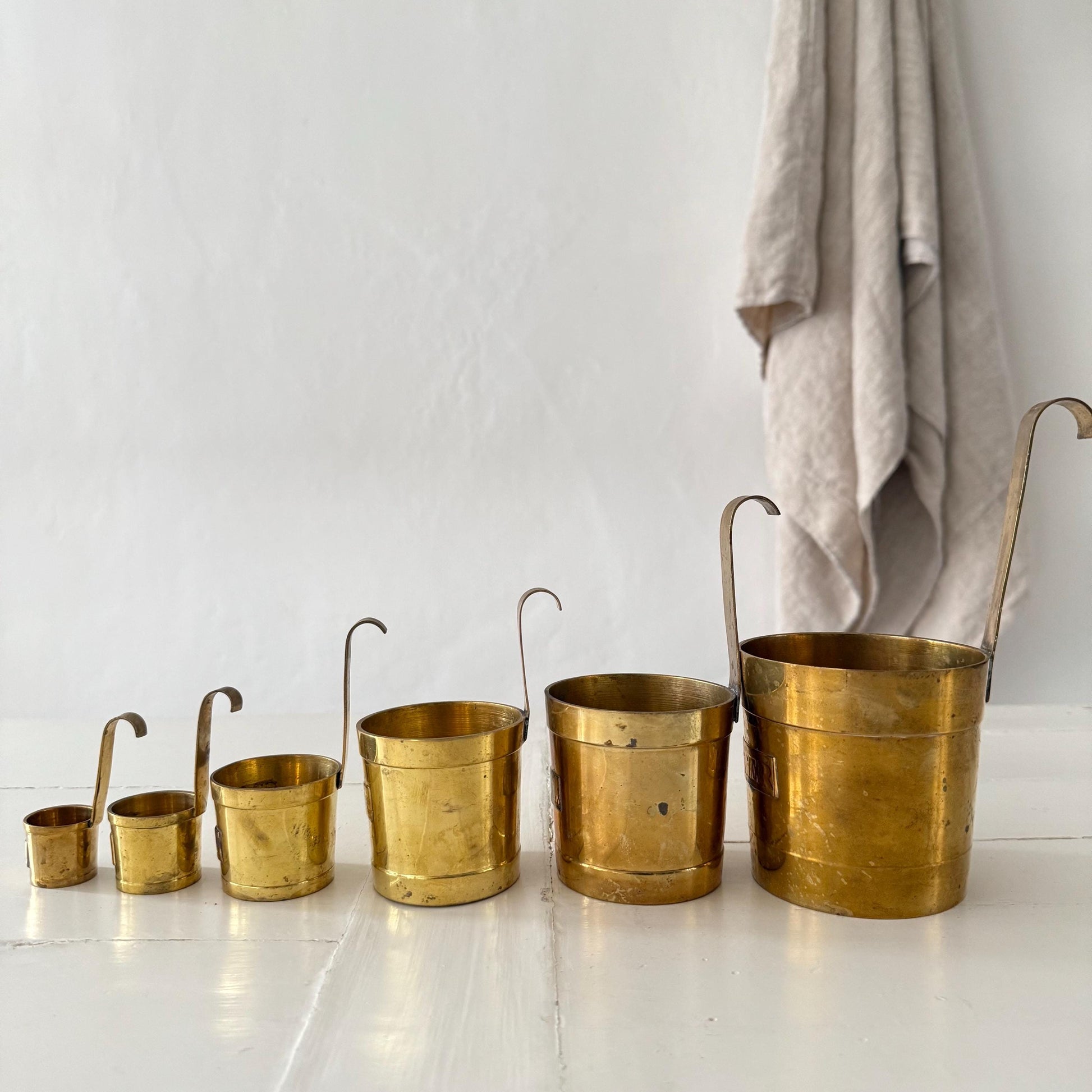 Beautifully made, weighty, fine quality… zoom in for detail. Would polish up if you prefer them shiny! Lovely kitchen / bar decor and useful too - nest them together or hang them in a row!