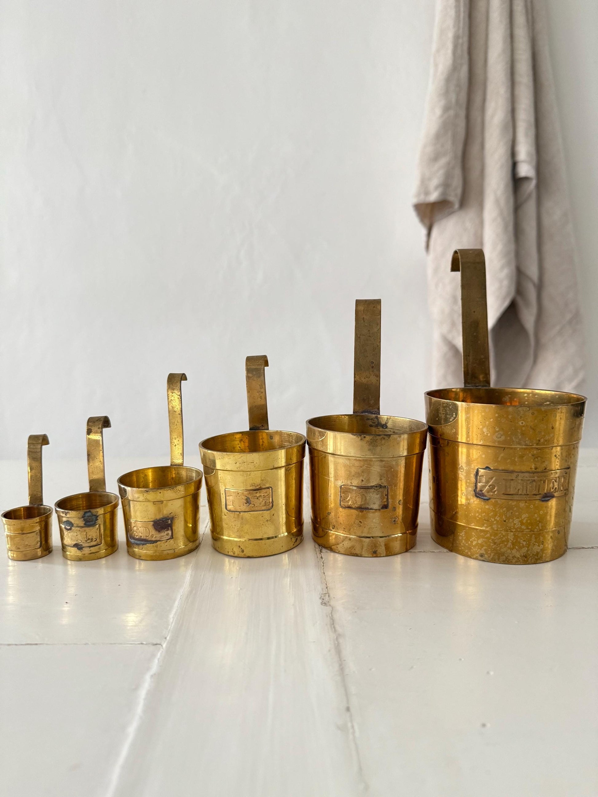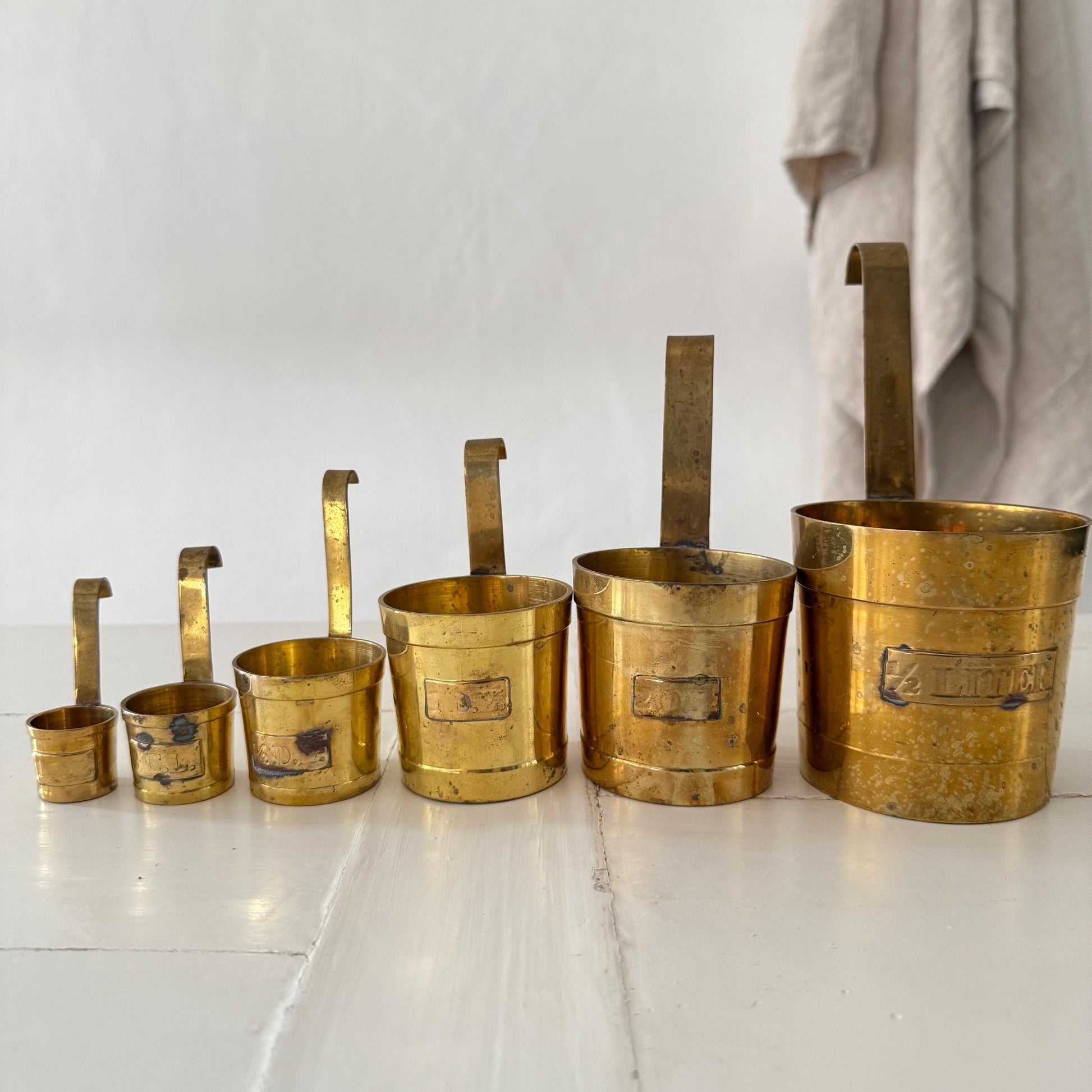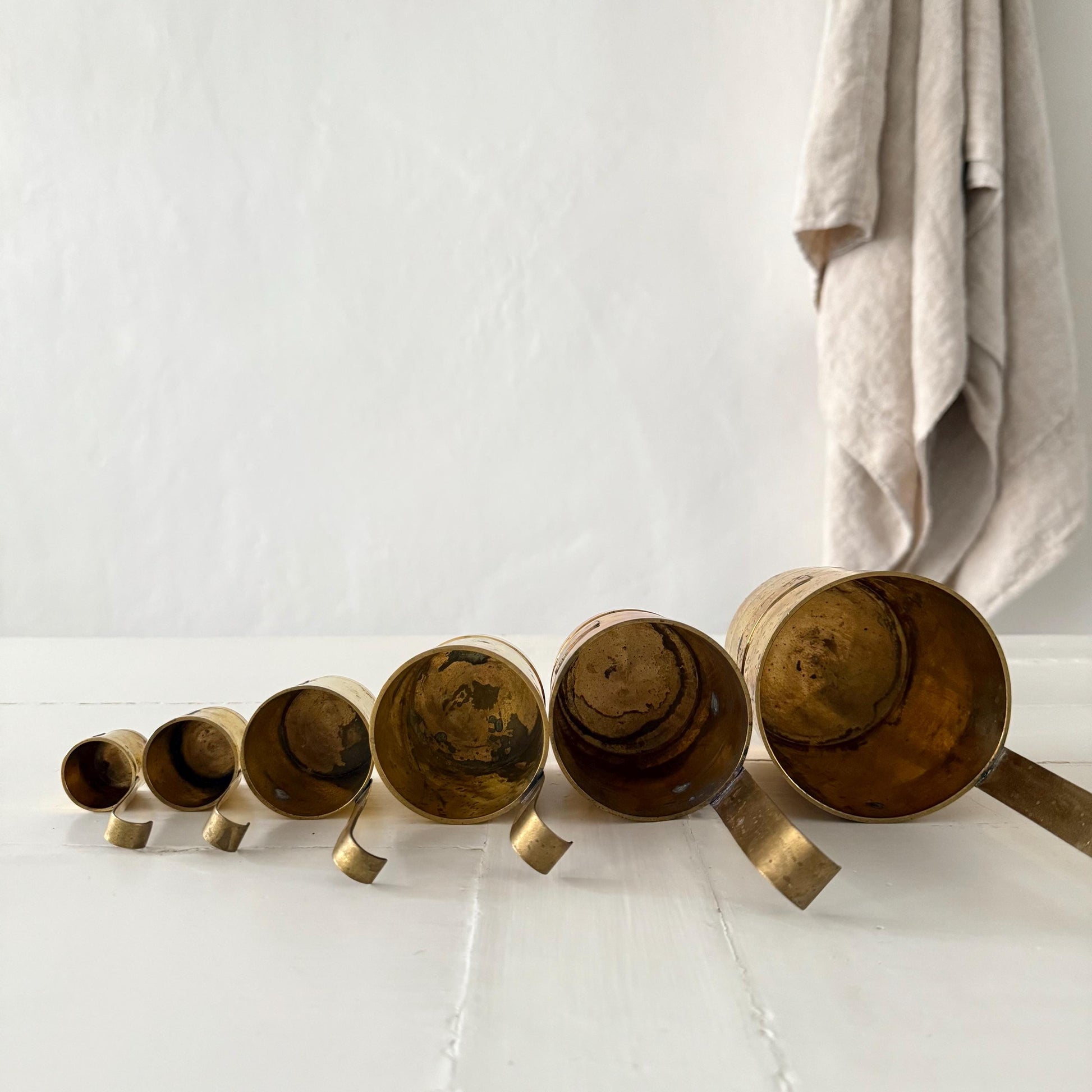Beautifully made, weighty, fine quality… zoom in for detail. Would polish up if you prefer them shiny! Lovely kitchen / bar decor and useful too - nest them together or hang them in a row!